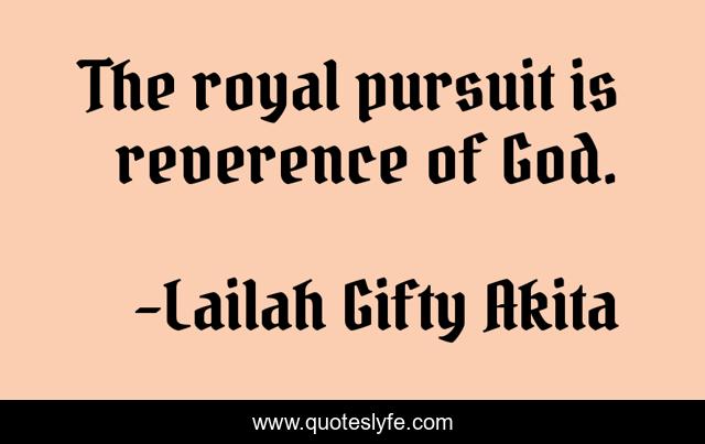 This page presents the quote "The royal pursuit is reverence of God.". Author of this quote is Lailah Gifty Akita. This quote is about god, christian-life, inspirational, reverence, enthusiasm,.