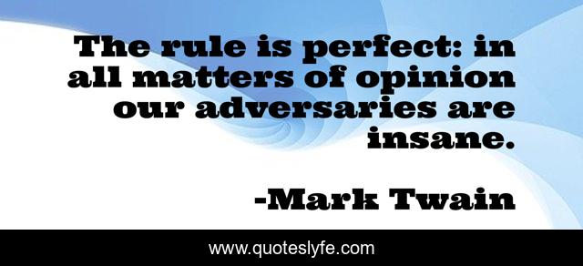 This page presents the quote "The rule is perfect: in all matters of opinion our adversaries are insane.". Author of this quote is Mark Twain. This quote is about twain, funny, comedy, humor, mark,.