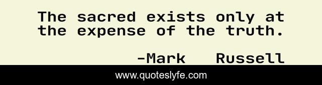 This page presents the quote "The sacred exists only at the expense of the truth.". Author of this quote is Mark Russell. This quote is about bible, sacred, truth,.