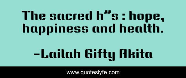 This page presents the quote "The sacred h”s : hope, happiness and health.". Author of this quote is Lailah Gifty Akita. This quote is about inspiring, health, happiness, hope,.