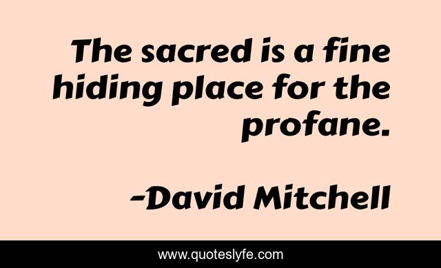 This page presents the quote "The sacred is a fine hiding place for the profane.". Author of this quote is David Mitchell. This quote is about religion, philosophy, society,.