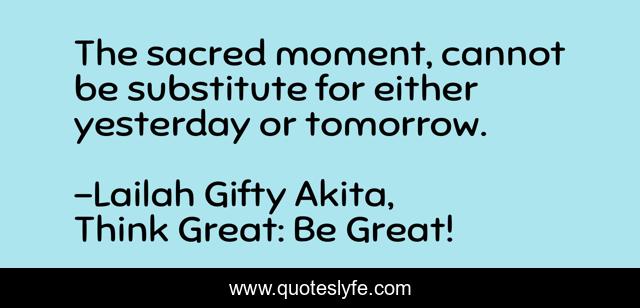 "Lailah Gifty Akita, Think Great: Be Great! Quotes." Quoteslyfe.com, 2025. Fri. 05 Dec. 2025. <https://www.quoteslyfe.com/quote/The-sacred-moment-cannot-be-substitute-for-189594>.