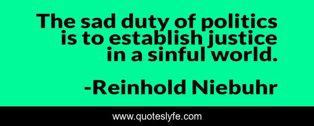 This page presents the quote "The sad duty of politics is to establish justice in a sinful world.". Author of this quote is Reinhold Niebuhr. .
