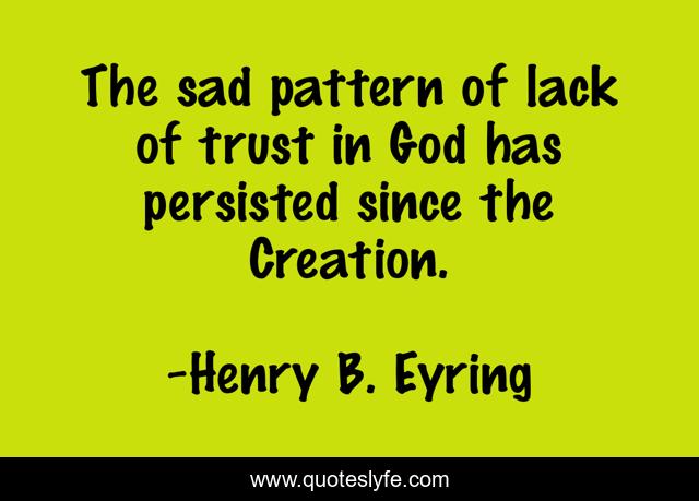 This page presents the quote "The sad pattern of lack of trust in God has persisted since the Creation.". Author of this quote is Henry B. Eyring. This quote is about god, creation, sad,.
