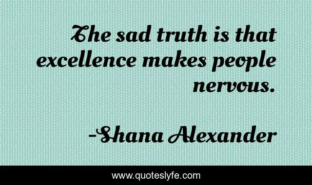 This page presents the quote "The sad truth is that excellence makes people nervous.". Author of this quote is Shana Alexander. This quote is about sad, excellence, people,.