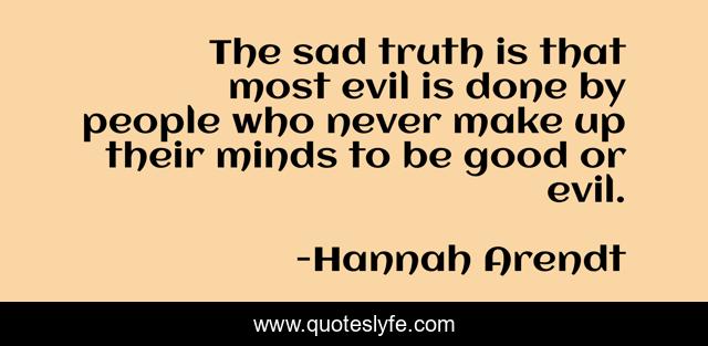 This page presents the quote "The sad truth is that most evil is done by people who never make up their minds to be good or evil.". Author of this quote is Hannah Arendt. This quote is about truth, evil, sad,.