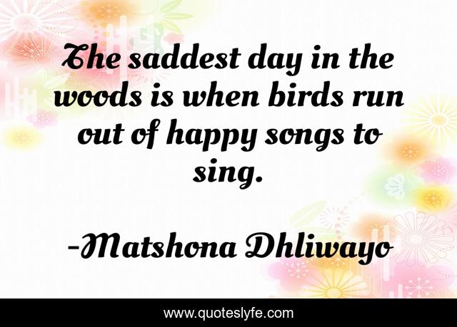 "Matshona Dhliwayo Quotes." Quoteslyfe.com, 2025. Fri. 05 Dec. 2025. <https://www.quoteslyfe.com/quote/The-saddest-day-in-the-woods-is-14760>.