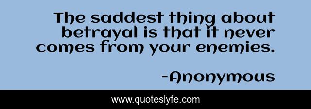 This page presents the quote "The saddest thing about betrayal is that it never comes from your enemies.". Author of this quote is Anonymous. This quote is about betrayal, friendship,.
