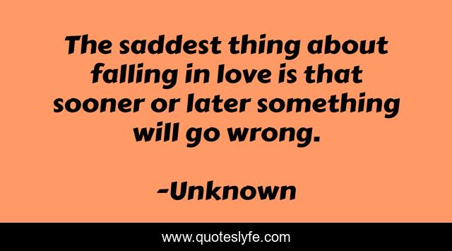 This page presents the quote "The saddest thing about falling in love is that sooner or later something will go wrong.". Author of this quote is Unknown. .