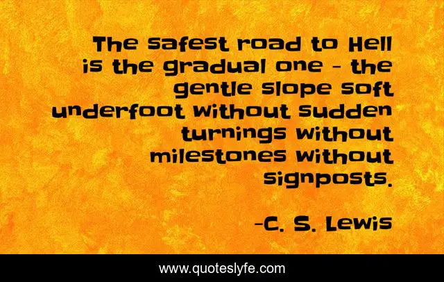 "C. S. Lewis Quotes." Quoteslyfe.com, 2025. Fri. 05 Dec. 2025. <https://www.quoteslyfe.com/quote/The-safest-road-to-Hell-is-the-267877>.