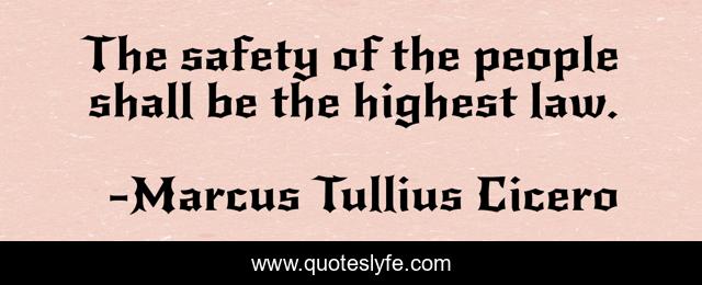 This page presents the quote "The safety of the people shall be the highest law.". Author of this quote is Marcus Tullius Cicero. This quote is about law, safety, people,.