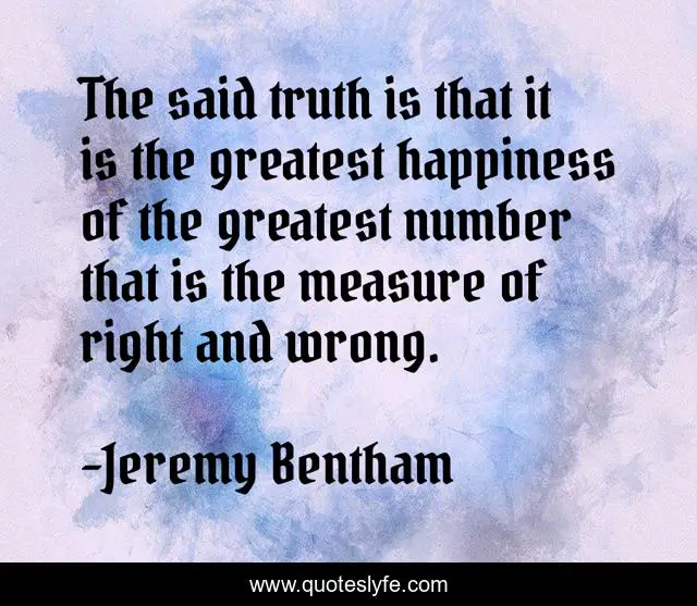 This page presents the quote "The said truth is that it is the greatest happiness of the greatest number that is the measure of right and wrong.". Author of this quote is Jeremy Bentham. This quote is about greatest, truth, truth is,.