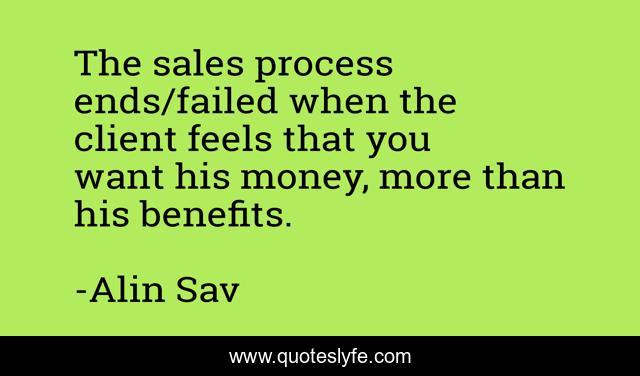 This page presents the quote "The sales process ends/failed when the client feels that you want his money, more than his benefits.". Author of this quote is Alin Sav. .