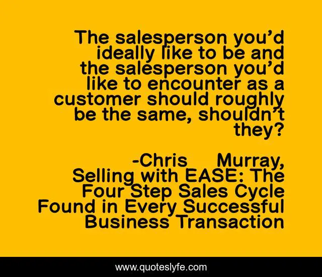 "Chris Murray, Selling with EASE: The Four Step Sales Cycle Found in Every Successful Business Transaction Quotes." Quoteslyfe.com, 2025. Fri. 05 Dec. 2025. <https://www.quoteslyfe.com/quote/The-salesperson-you-d-ideally-like-to-80265>.