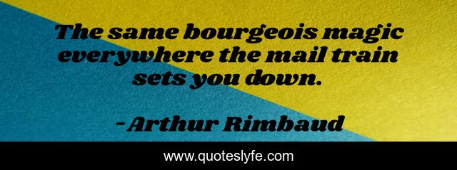 "Arthur Rimbaud Quotes." Quoteslyfe.com, 2025. Sat. 06 Dec. 2025. <https://www.quoteslyfe.com/quote/The-same-bourgeois-magic-everywhere-the-mail-133532>.