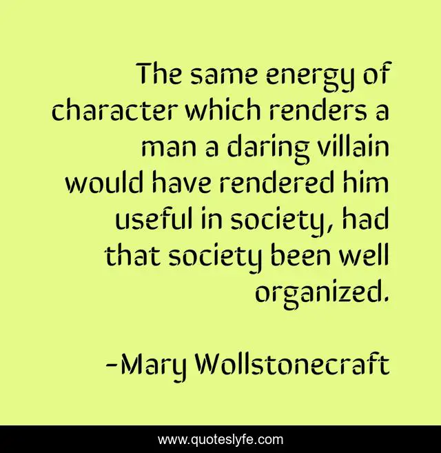 This page presents the quote "The same energy of character which renders a man a daring villain would have rendered him useful in society, had that society been well organized.". Author of this quote is Mary Wollstonecraft. This quote is about energy, character, man,.