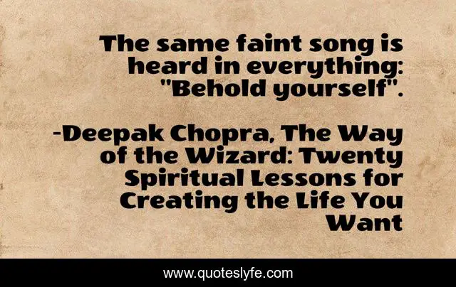 This page presents the quote "The same faint song is heard in everything: "Behold yourself".". Author of this quote is Deepak Chopra, The Way of the Wizard: Twenty Spiritual Lessons for Creating the Life You Want. .