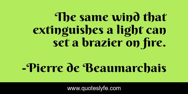 This page presents the quote "The same wind that extinguishes a light can set a brazier on fire.". Author of this quote is Pierre de Beaumarchais. This quote is about victories, worthy,.