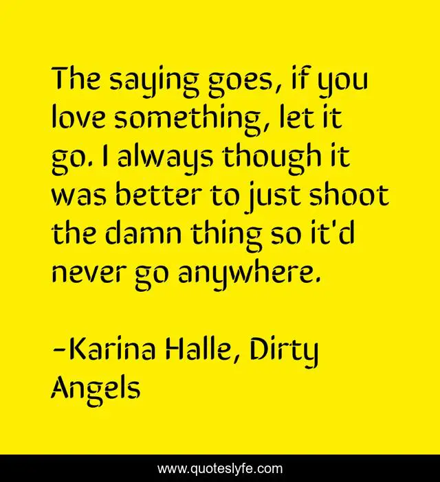 This page presents the quote "The saying goes, if you love something, let it go. I always though it was better to just shoot the damn thing so it'd never go anywhere.". Author of this quote is Karina Halle, Dirty Angels. This quote is about romance, violence,.