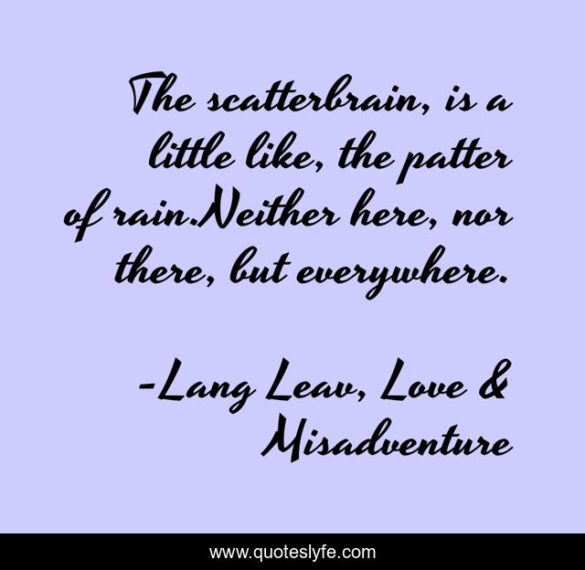 "Lang Leav, Love & Misadventure Quotes." Quoteslyfe.com, 2025. Sun. 07 Dec. 2025. <https://www.quoteslyfe.com/quote/The-scatterbrain-is-a-little-like-the-137707>.