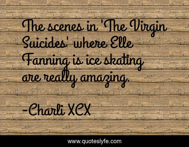 This page presents the quote "The scenes in 'The Virgin Suicides' where Elle Fanning is ice skating are really amazing.". Author of this quote is Charli XCX. This quote is about skating, ice,.