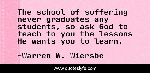 This page presents the quote "The school of suffering never graduates any students, so ask God to teach to you the lessons He wants you to learn.". Author of this quote is Warren W. Wiersbe. This quote is about suffering, adversity, affliction,.