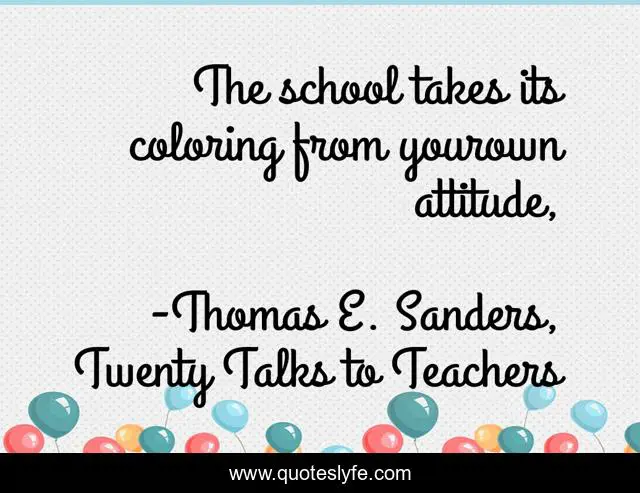 "Thomas E. Sanders, Twenty Talks to Teachers Quotes." Quoteslyfe.com, 2025. Sat. 06 Dec. 2025. <https://www.quoteslyfe.com/quote/The-school-takes-its-coloring-from-yourown-198759>.