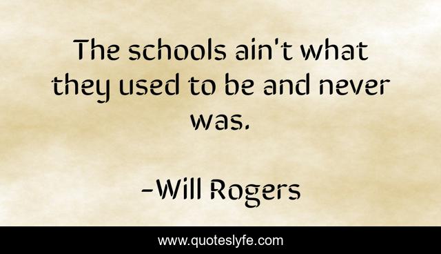 This page presents the quote "The schools ain't what they used to be and never was.". Author of this quote is Will Rogers. .