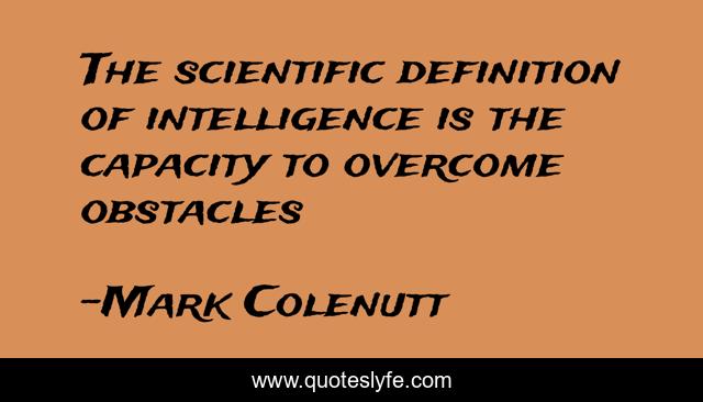 This page presents the quote "The scientific definition of intelligence is the capacity to overcome obstacles". Author of this quote is Mark Colenutt. This quote is about intelligence, obstacles, inspirational, enthusiasm,.
