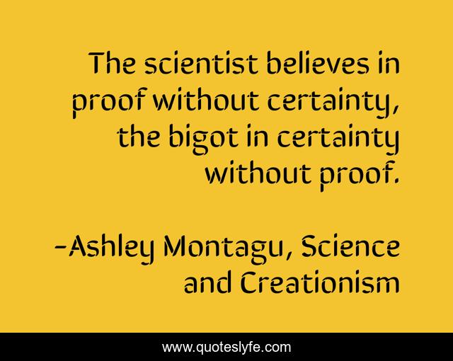 "Ashley Montagu, Science and Creationism Quotes." Quoteslyfe.com, 2025. Sat. 06 Dec. 2025. <https://www.quoteslyfe.com/quote/The-scientist-believes-in-proof-without-certainty-111554>.