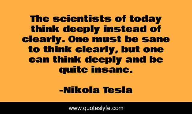This page presents the quote "The scientists of today think deeply instead of clearly. One must be sane to think clearly, but one can think deeply and be quite insane.". Author of this quote is Nikola Tesla. .