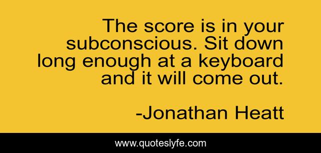 This page presents the quote "The score is in your subconscious. Sit down long enough at a keyboard and it will come out.". Author of this quote is Jonathan Heatt. This quote is about film-score, filmmaking, movies,.