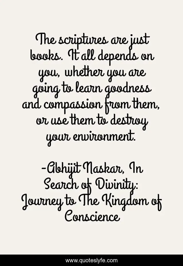 "Abhijit Naskar, In Search of Divinity: Journey to The Kingdom of Conscience Quotes." Quoteslyfe.com, 2025. Fri. 05 Dec. 2025. <https://www.quoteslyfe.com/quote/The-scriptures-are-just-books-It-all-38147>.