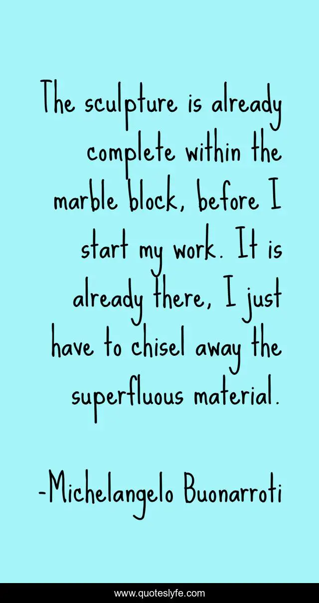 "Michelangelo Buonarroti Quotes." Quoteslyfe.com, 2025. Fri. 05 Dec. 2025. <https://www.quoteslyfe.com/quote/The-sculpture-is-already-complete-within-the-65570>.