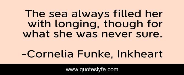 This page presents the quote "The sea always filled her with longing, though for what she was never sure.". Author of this quote is Cornelia Funke, Inkheart. This quote is about longing, sea,.