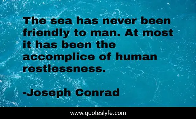 This page presents the quote "The sea has never been friendly to man. At most it has been the accomplice of human restlessness.". Author of this quote is Joseph Conrad. .