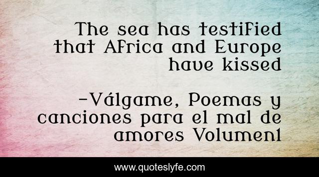"Válgame, Poemas y canciones para el mal de amores Volumen1 Quotes." Quoteslyfe.com, 2025. Sat. 06 Dec. 2025. <https://www.quoteslyfe.com/quote/The-sea-has-testified-that-Africa-and-242434>.