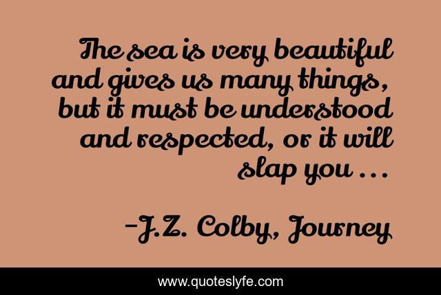 This page presents the quote "The sea is very beautiful and gives us many things, but it must be understood and respected, or it will slap you ...". Author of this quote is J.Z. Colby, Journey. This quote is about nebador, respect, sea, ocean,.