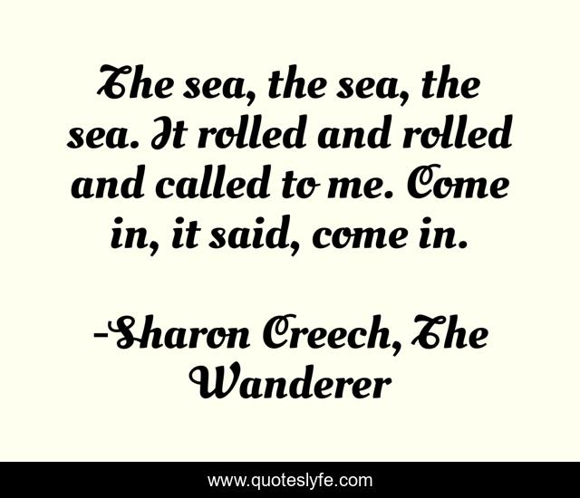 This page presents the quote "The sea, the sea, the sea. It rolled and rolled and called to me. Come in, it said, come in.". Author of this quote is Sharon Creech, The Wanderer. .