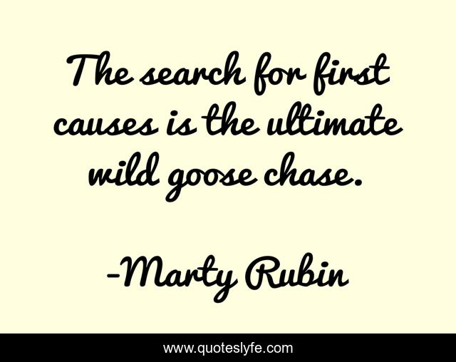 This page presents the quote "The search for first causes is the ultimate wild goose chase.". Author of this quote is Marty Rubin. This quote is about first-causes, beginnings, philosophy,.