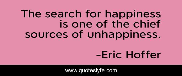 This page presents the quote "The search for happiness is one of the chief sources of unhappiness.". Author of this quote is Eric Hoffer. This quote is about sources, search, happiness,.