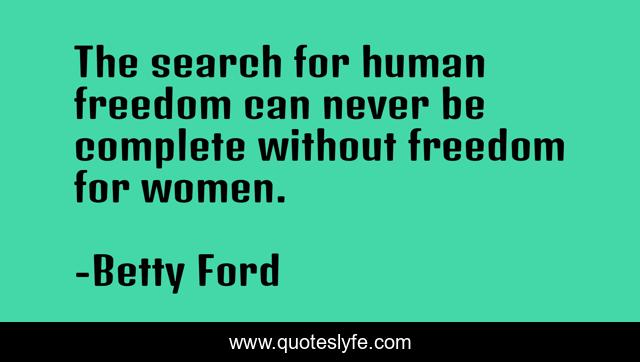 This page presents the quote "The search for human freedom can never be complete without freedom for women.". Author of this quote is Betty Ford. This quote is about freedom, search, human,.