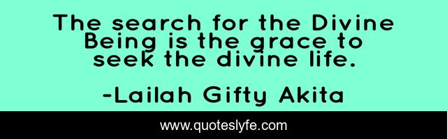 This page presents the quote "The search for the Divine Being is the grace to seek the divine life.". Author of this quote is Lailah Gifty Akita. This quote is about life, christian, god, motivational, confidence, theology, your-life, supernatural, optimistic,.