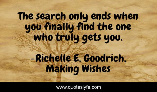 This page presents the quote "The search only ends when you finally find the one who truly gets you.". Author of this quote is Richelle E. Goodrich, Making Wishes. This quote is about gets-you, search, love, the-one, richelle, richelle-e-goodrich, richelle-goodrich, affection,.