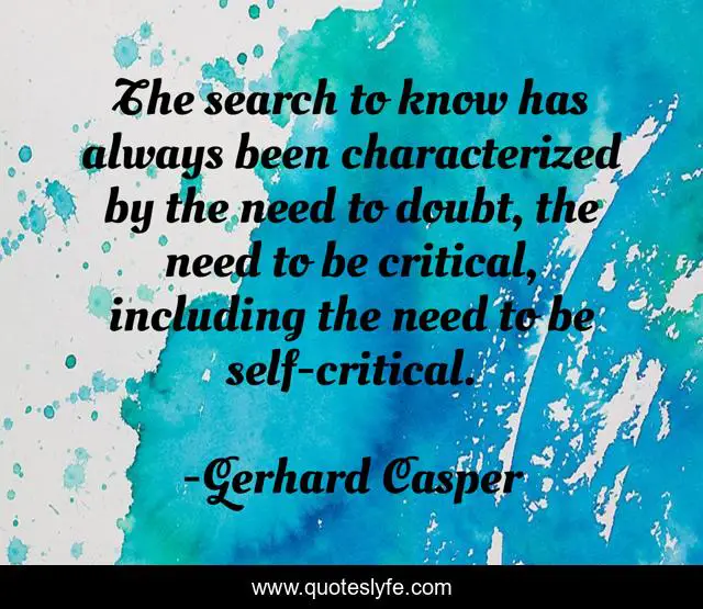 This page presents the quote "The search to know has always been characterized by the need to doubt, the need to be critical, including the need to be self-critical.". Author of this quote is Gerhard Casper. This quote is about doubt, critical-thinking, self-criticism,.