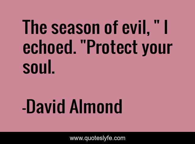 This page presents the quote "The season of evil, " I echoed. "Protect your soul.". Author of this quote is David Almond. This quote is about kit-s-wilderness, david-almond, evil, soul,.