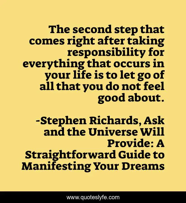 "Stephen Richards, Ask and the Universe Will Provide: A Straightforward Guide to Manifesting Your Dreams Quotes." Quoteslyfe.com, 2025. Sat. 06 Dec. 2025. <https://www.quoteslyfe.com/quote/The-second-step-that-comes-right-after-44815>.