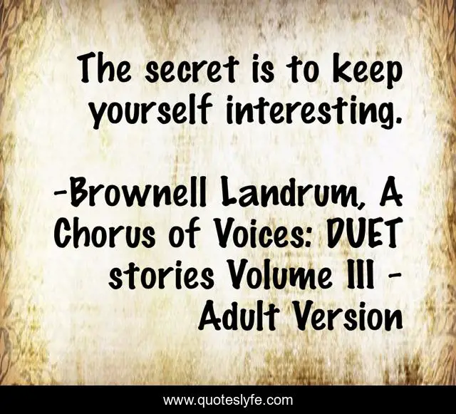 "Brownell Landrum, A Chorus of Voices: DUET stories Volume III - Adult Version Quotes." Quoteslyfe.com, 2025. Sat. 06 Dec. 2025. <https://www.quoteslyfe.com/quote/The-secret-is-to-keep-yourself-interesting-246654>.