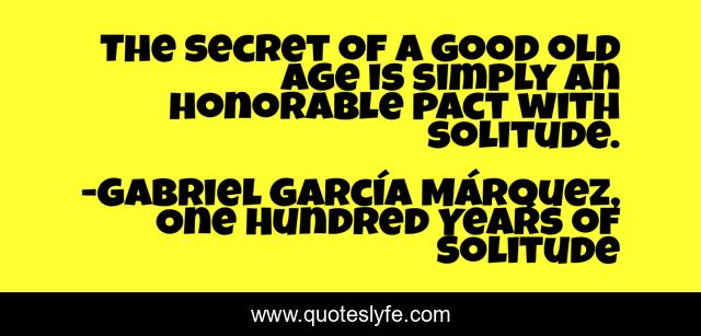 This page presents the quote "The secret of a good old age is simply an honorable pact with solitude.". Author of this quote is Gabriel García Márquez, One Hundred Years of Solitude. This quote is about aging, solitude, old-age,.