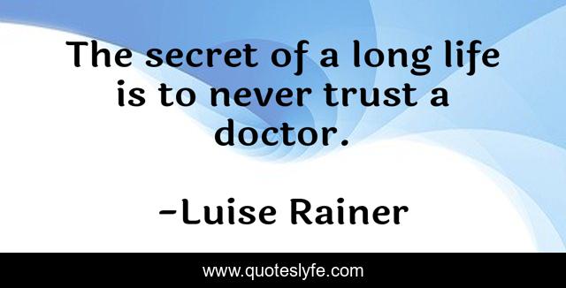 This page presents the quote "The secret of a long life is to never trust a doctor.". Author of this quote is Luise Rainer. This quote is about life, long, doctor,.